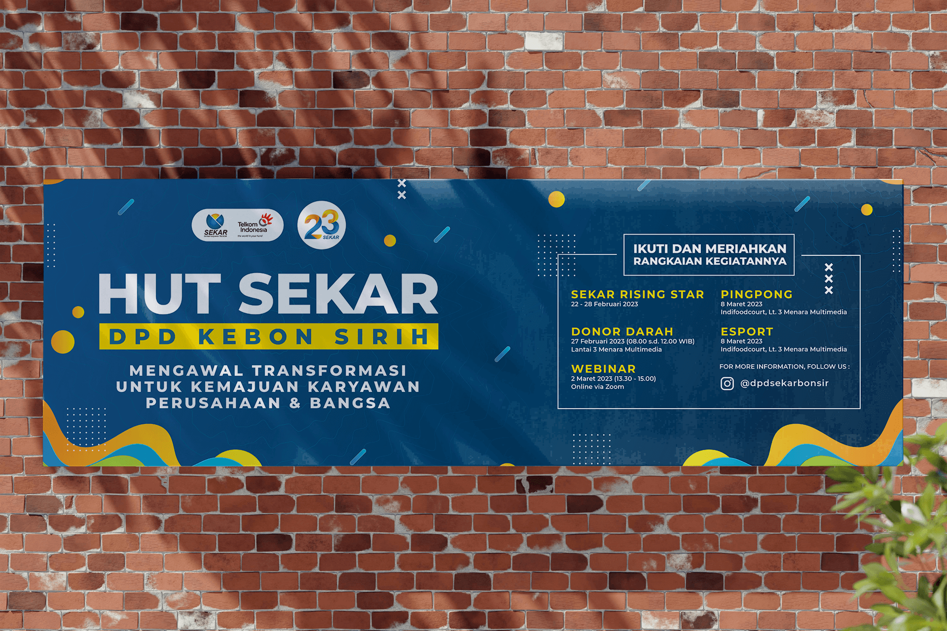 The Sekar Telkom anniversary celebration requires a main visual that professionally and modernly represents the spirit of the event.